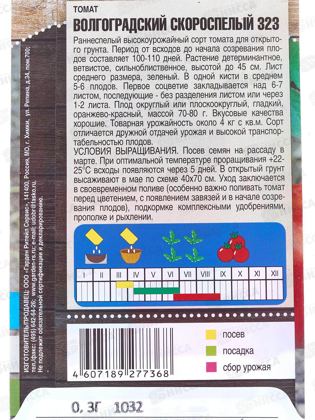 Томат Волгоградский 323 ранний Д 0,3 грамма *10 Т.П. + СРОК ДО 12.25