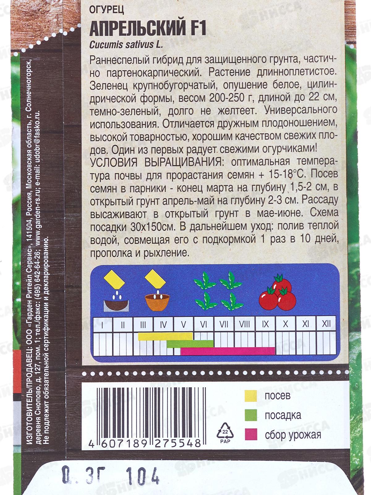 Огурец Апрельский F1 ранний 0,3 грамма *10 Т.П. +