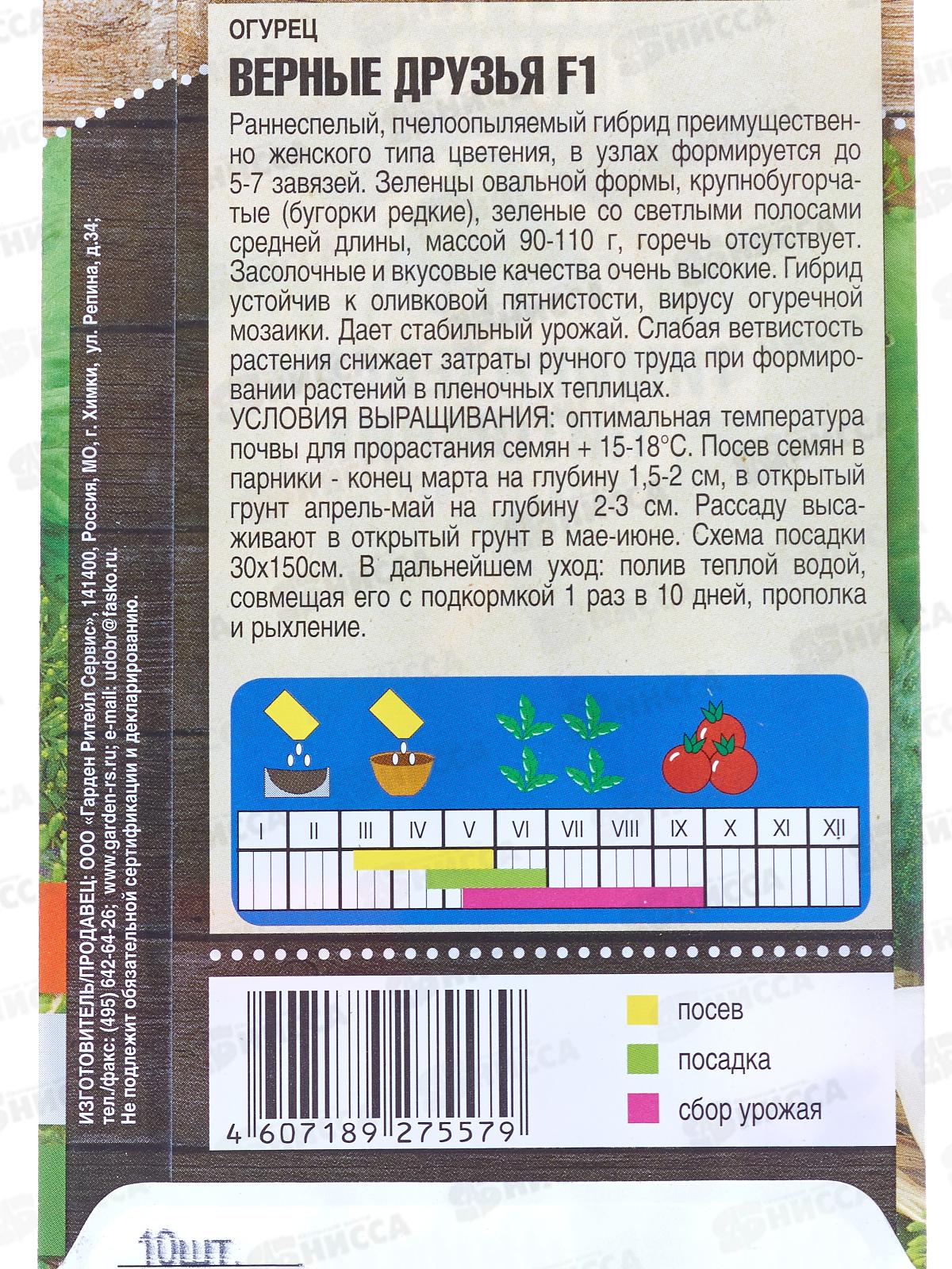 Огурец Верные друзья пчелоопыляемый F1(для засолки) 10 штук *10 Т.П. +