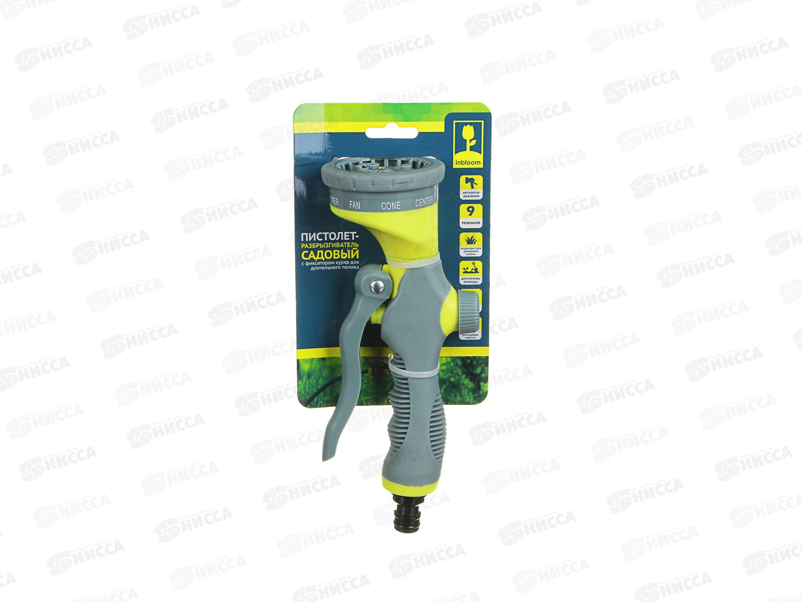 Пистолет садовый для полива Inbloom – это удобный разбрызгиватель, который станет универсальным инструментом для организации полива на приусадебном участке. Оснащен регулятором давления воды и имеет 9 настраиваемых режимов работы. Предусмотрен режим фиксации курка для возможности длительного и непрерывного полива. Подходит для разнообразных нужд: орошения газона, полива огорода, мойки тротуарной плитки. Изготовлен из прочного ABS-пластика.
