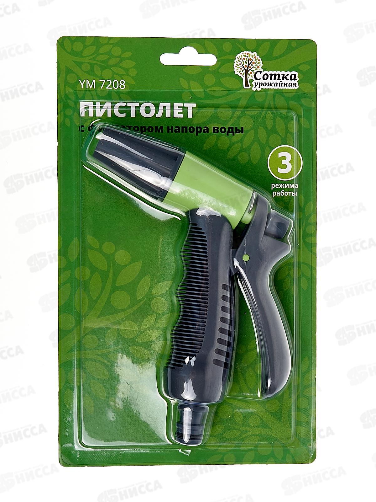 Линейка комплектующих для полива растений "Урожайная сотка" - это качественная продукция со стильным дизайном. Будет незаменима на любом дачном участке. Пистолет поливочный 3-х функциональный 'Урожайная сотка' прорезиненный (YM7208). Тип крепления - под коннектор. Применяется для полива растений. Соединение со шлангом.