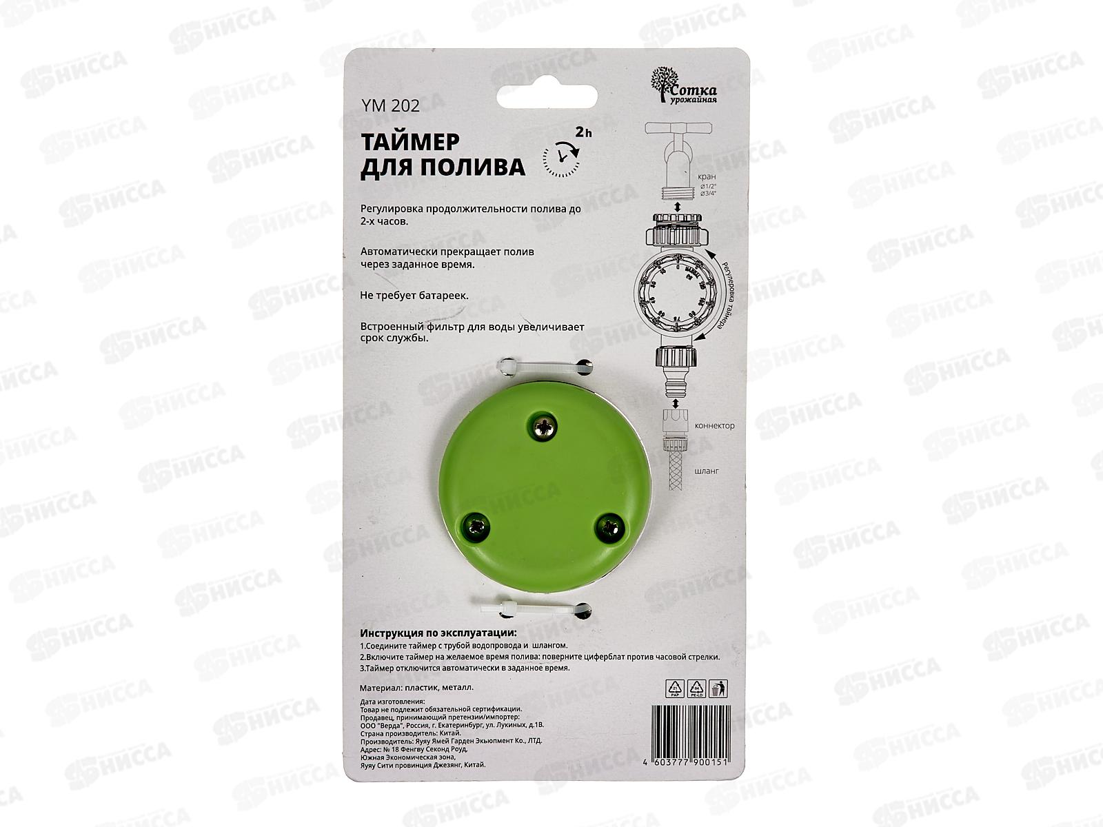 Линейка комплектующих для полива растений "Урожайная сотка" - это качественная продукция со стильным дизайном. Будет незаменима на любом дачном участке. Тип крепления - под коннектор на выходе и на входе - переходник на трубу 1/2х3/4. Таймер применяется для автоматического выключения полива растений. Таймер механический - для работы не требуются батарейки. Таймер имеет ограничение в работе - до 2-х часов. Вы можете включить полив растений, запустить таймер и спокойно заниматься своими делами. В назначеное время таймер прекратит подачу воды. Таймер оснащен фильтром, поэтому через таймер проходит только фильтрованная вода, а это значительно увеличивает срок службы изделия.