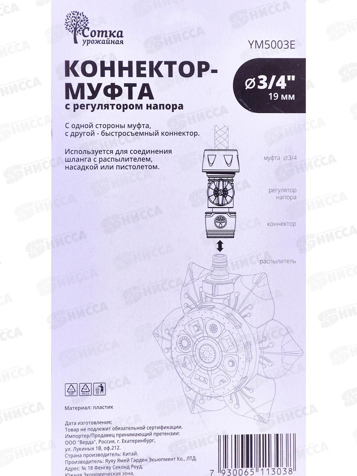 Коннектор-муфта 3/4 д/шланга с регулятором напора YM5003E Р0110