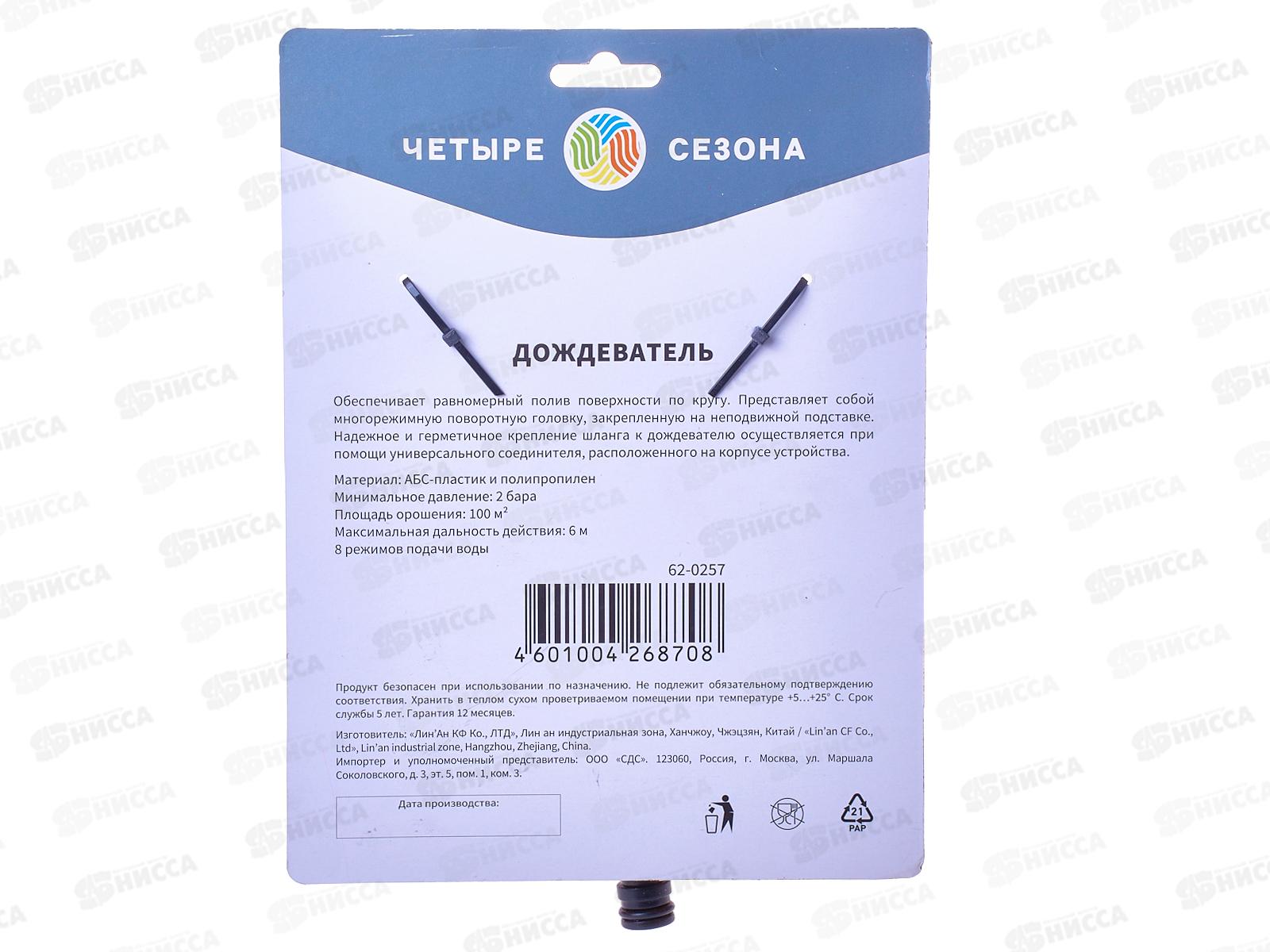 Дождеватель для полива круговой 100м 8реж Четыре Сезона 62-0257