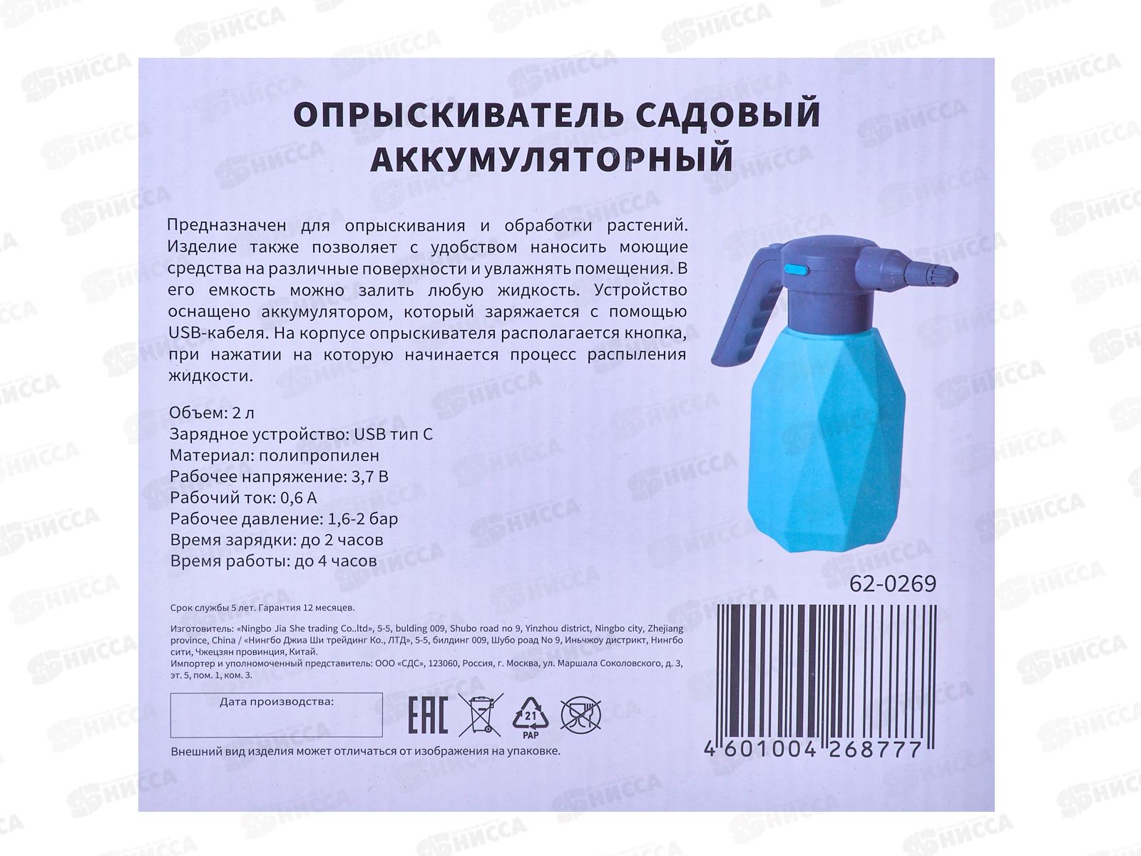 Опрыскиватель садовый аккум для растений 2л Четыре Сезона 62-0269
