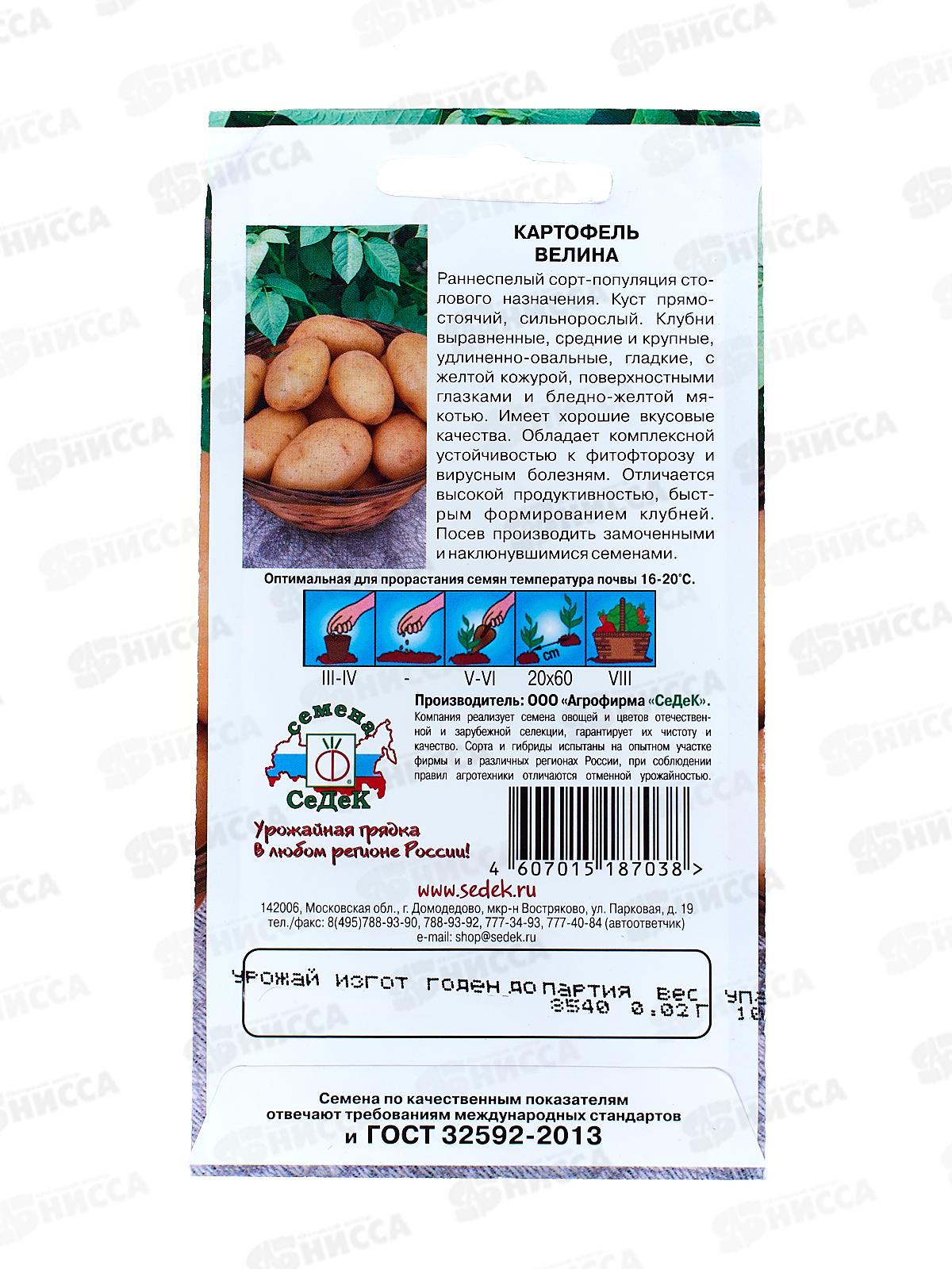 Раннеспелый сорт-популяция столового назначения. Куст прямостоячий, сильнорослый. Клубни выравненные, средние и крупные, удлиненно-овальные, гладкие, с желтой кожурой, поверхностными глазками и бледно-желтой мякотью. Имеет хорошие вкусовые качества. Обладает комплексной устойчивостью к фитофторозу и вирусным болезням. Отличается высокой продуктивностью, быстрым формированием клубней. Посев производить замоченными и наклюнувшимися семенами.