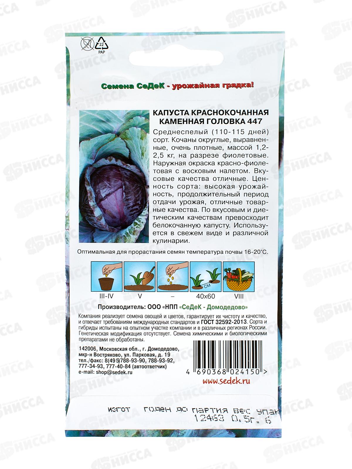 Капуста Каменная Головка 447 краснокочанная (Евро, 0,5) СеДек +