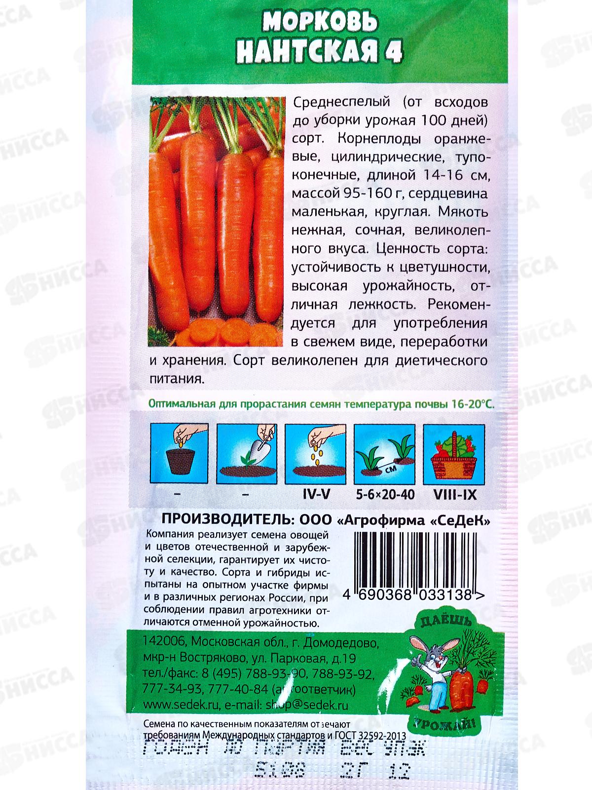 Морковь Нантская 4 ДУ (Евро, 2) СеДек *10 +