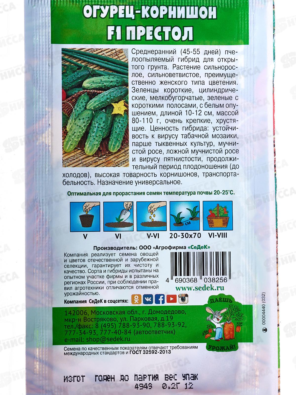 Огурец Престол F1 закрытый грунт ДУ (Евро, 0,2) СеДек *10 +