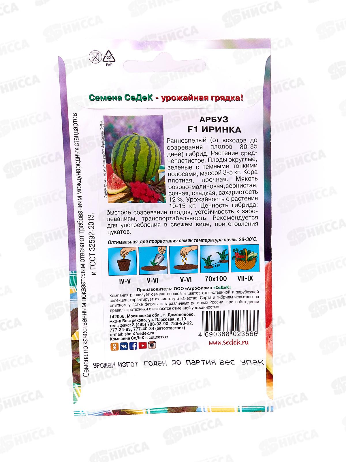 Арбуз Иринка F1 (Евро, 0,5) СеДек *10 +