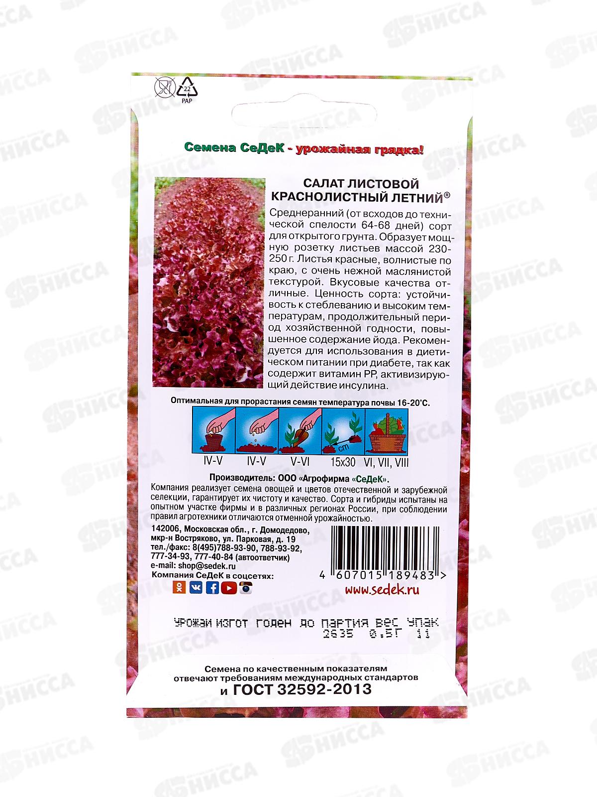 Салат Краснолистный Летний (листовой) (Евро, 0,5 9739) СеДек