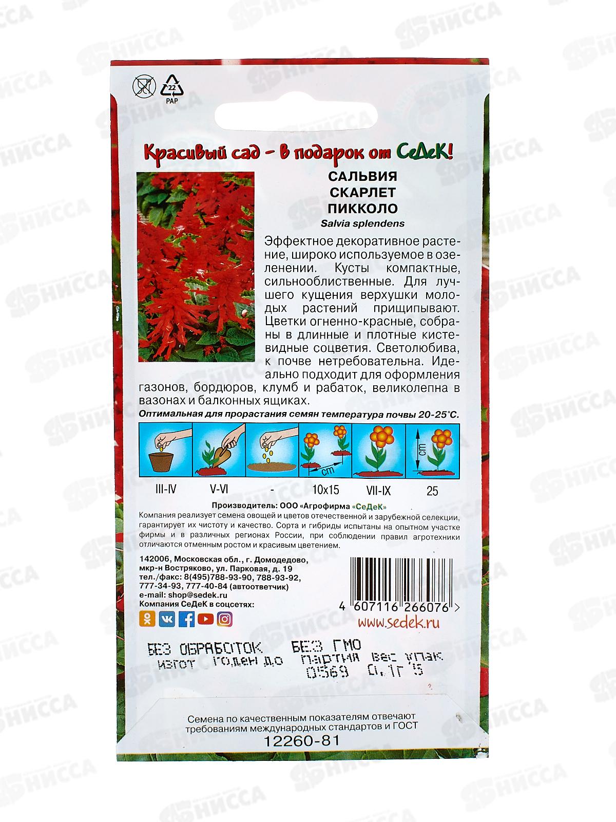 Сальвия Скарлет пиколло (блестящая, низкорослая, красная) (Евро, 0,2) СеДек *10 +
