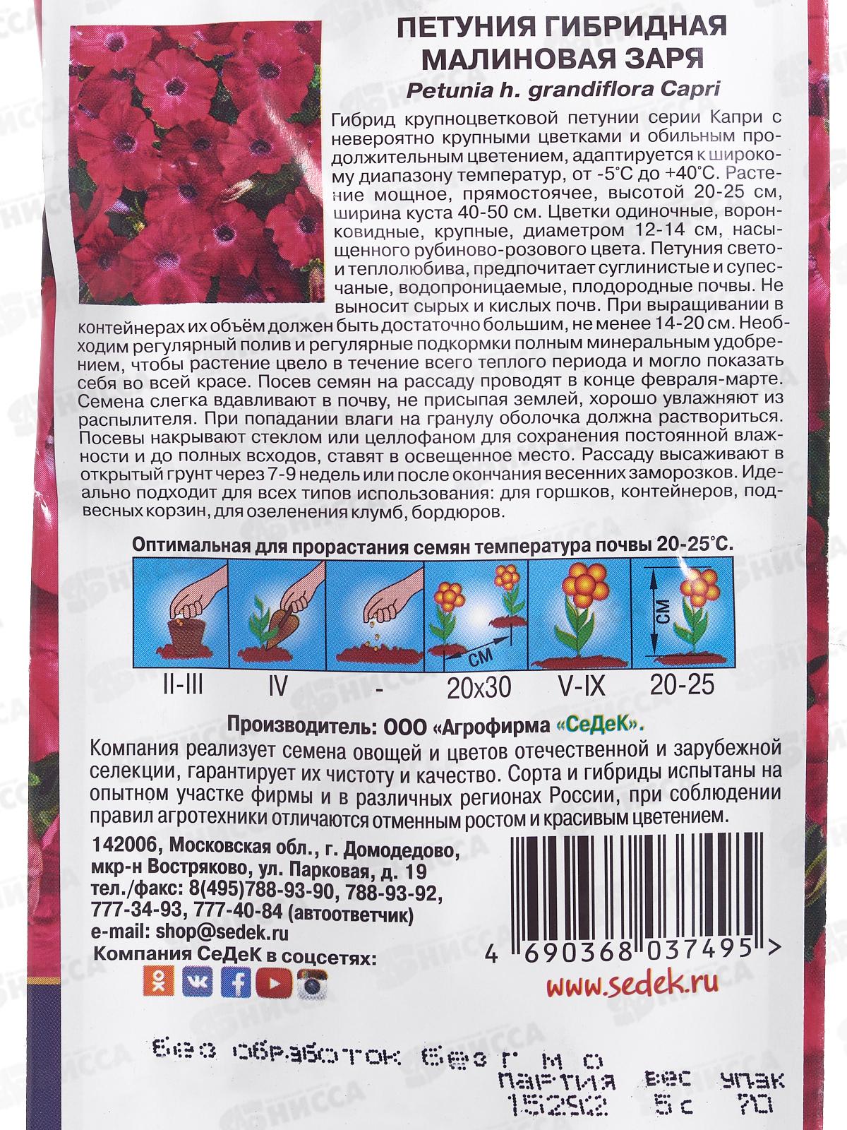 Петуния Малиновая Заря F1 (крупноцветковая, рубиново-розовая) (Евро, 10) СеДек *10 +