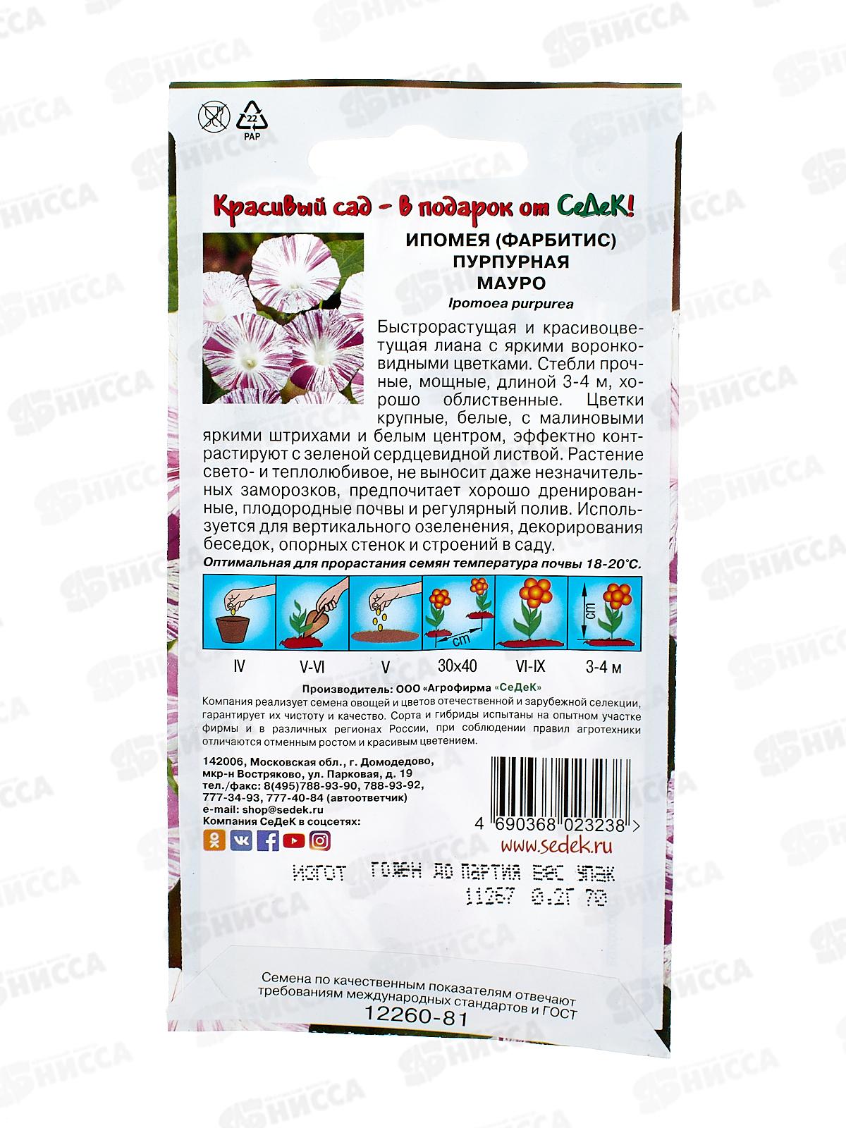 Ипомея Мауро (тип пурпурная, белая с малиновыми штрихами) (Евро) СеДек +