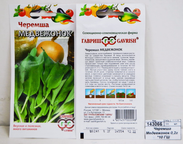Зимостойкое, влаголюбивое, теневыносливое растение из семейства Луковые. В пищу используются молодые побеги и листья в свежем, соленом, маринованном, квашеном и сушеном виде. Зелень черемши имеет приятный слабо чесночный вкус. Семена прорастают только при подзимнем севе или после стратификации (промораживание в течение 80-100 дней при t 0-3°С). Период вегетации у черемши короткий. Листья отрастают сразу после таяния снега в течение 24-29 дней. Стрелка появляется в начале июня, а массовое цветение начинается в середине месяца. Семена созревают к началу августа. Сбор зелени проводят в конце мая, срезая надземную часть растения целиком, так чтобы полностью сохранить луковицу. Срезку производят не чаще 1 раза в 2-3 года на одном месте. Растение размножается семенами и вегетативно. Схема посева: 5х10 см. Первый сбор листьев проводят через 15 дней после начала отрастания.