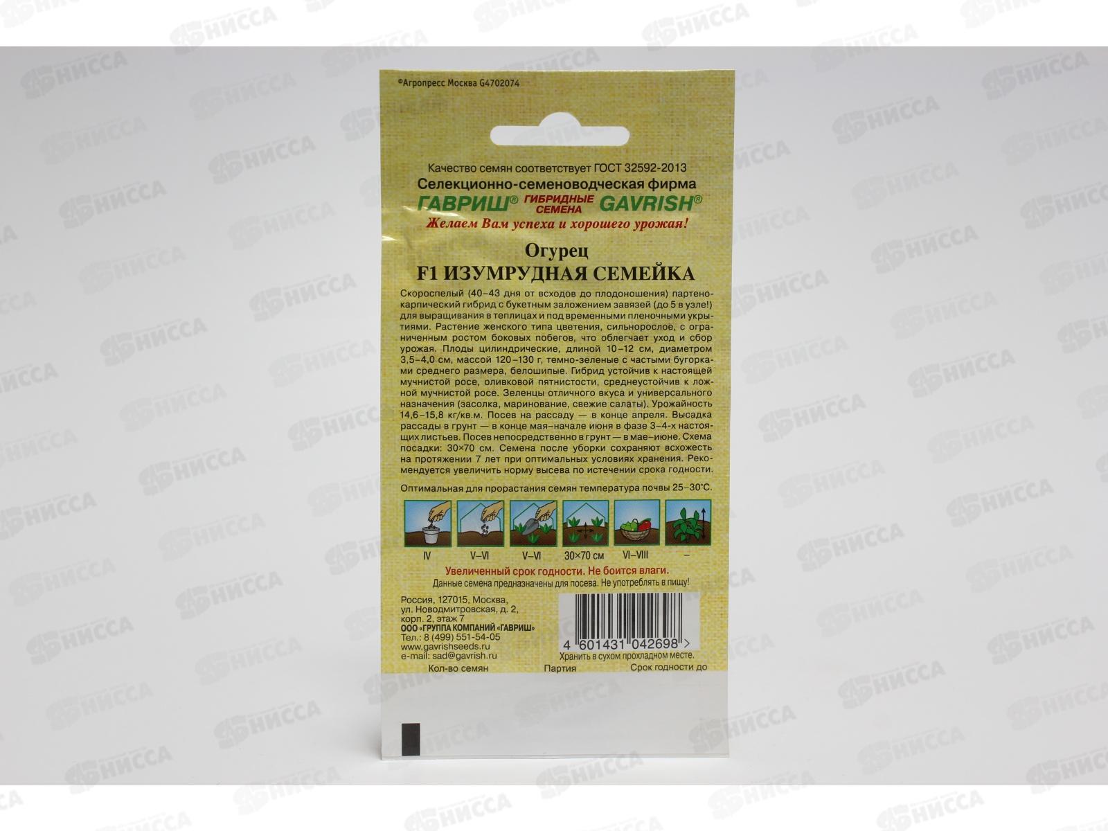 Огурец Изумрудная семейка F1 0,3 гр корнишон Семена от автора Н12 *10 ГШ +