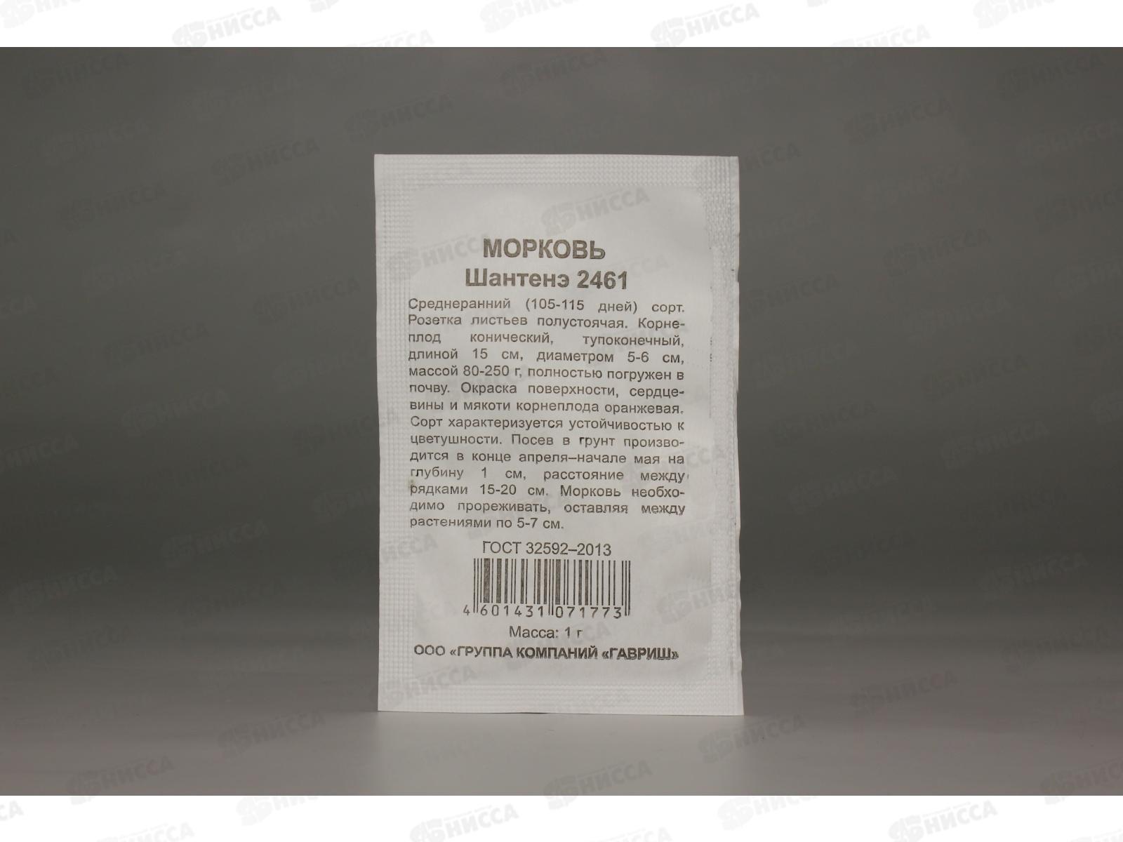 • Морковь Шантенэ 2461  1грамм  белый пакет Удачная серия  *20 ГШ +