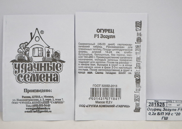 Огурец Зозуля F1 0,2 грамма белый пакет Удачная серия *20 ГШ +