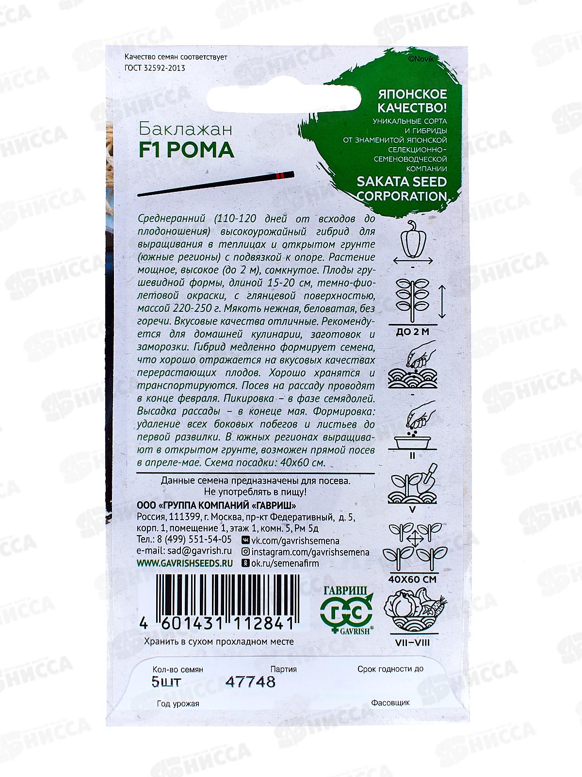 Баклажан Рома F1 5шт Саката *10 ГШ