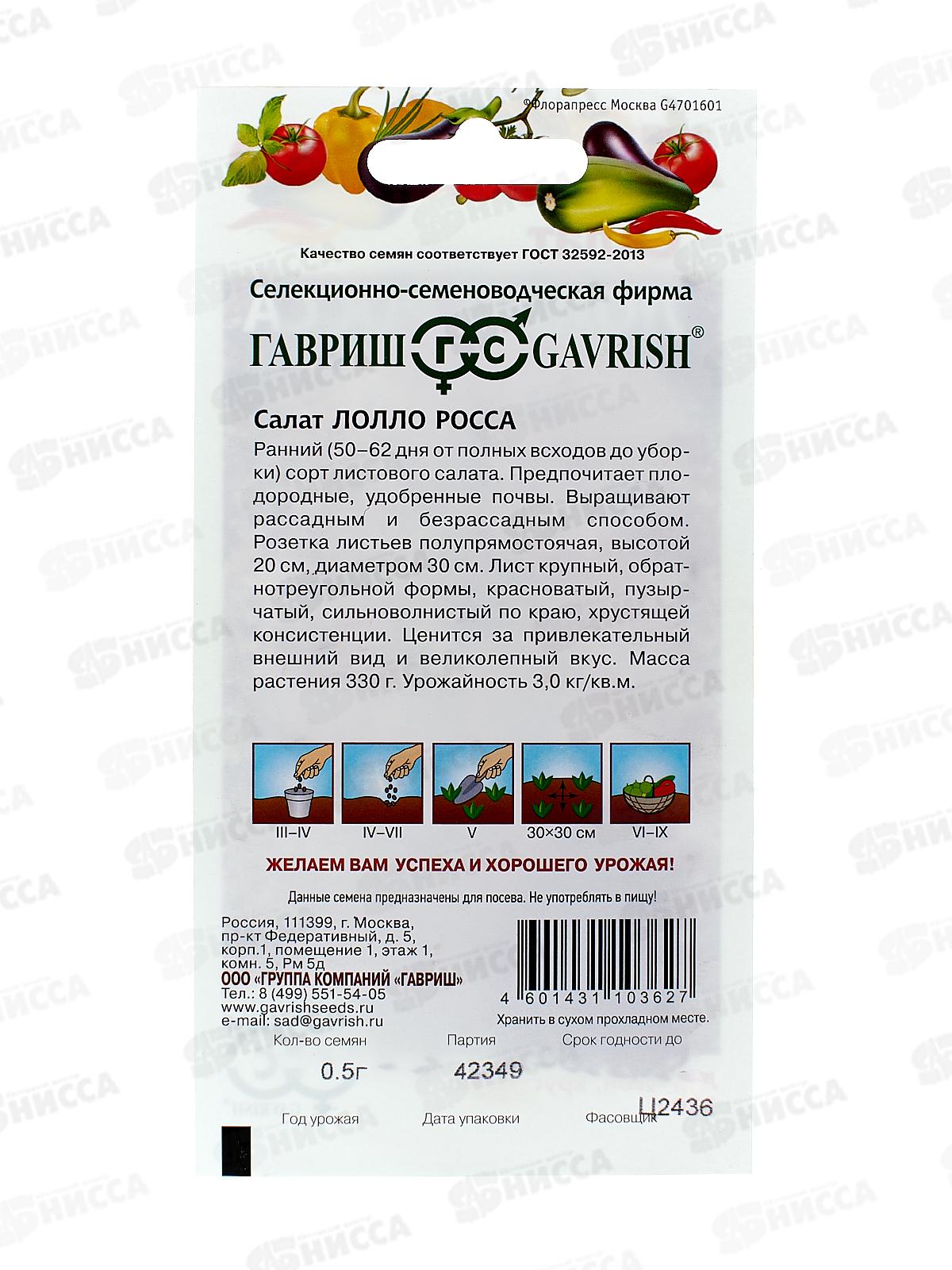 Салат Лолло Росса листовой, бордовый 0,5г *10 ГШ +