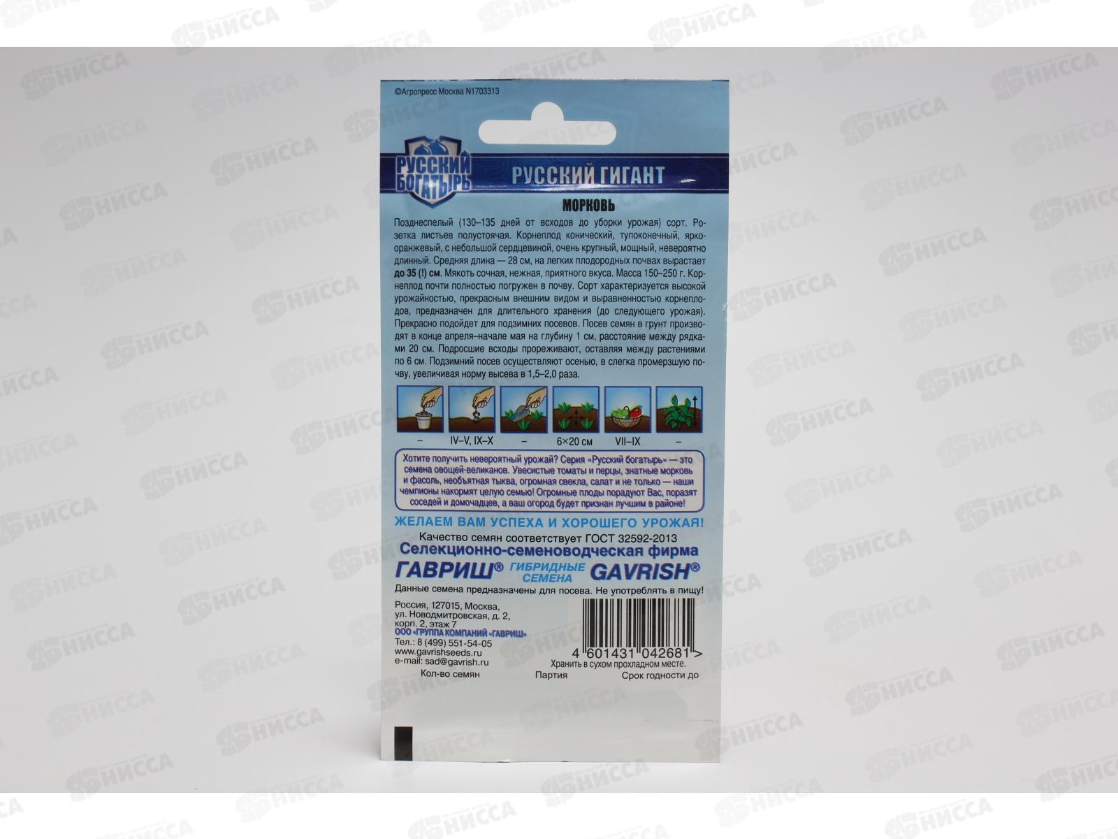 Морковь Русский гигант 2,0грамма серия Русский богатырь Н13 *10 ГШ