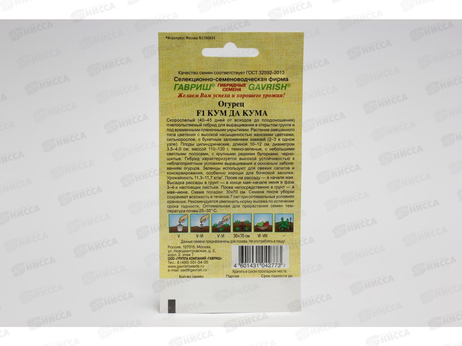 Огурец Кум да Кума F1 10 штук Семена от автора Н12 *10 ГШ +