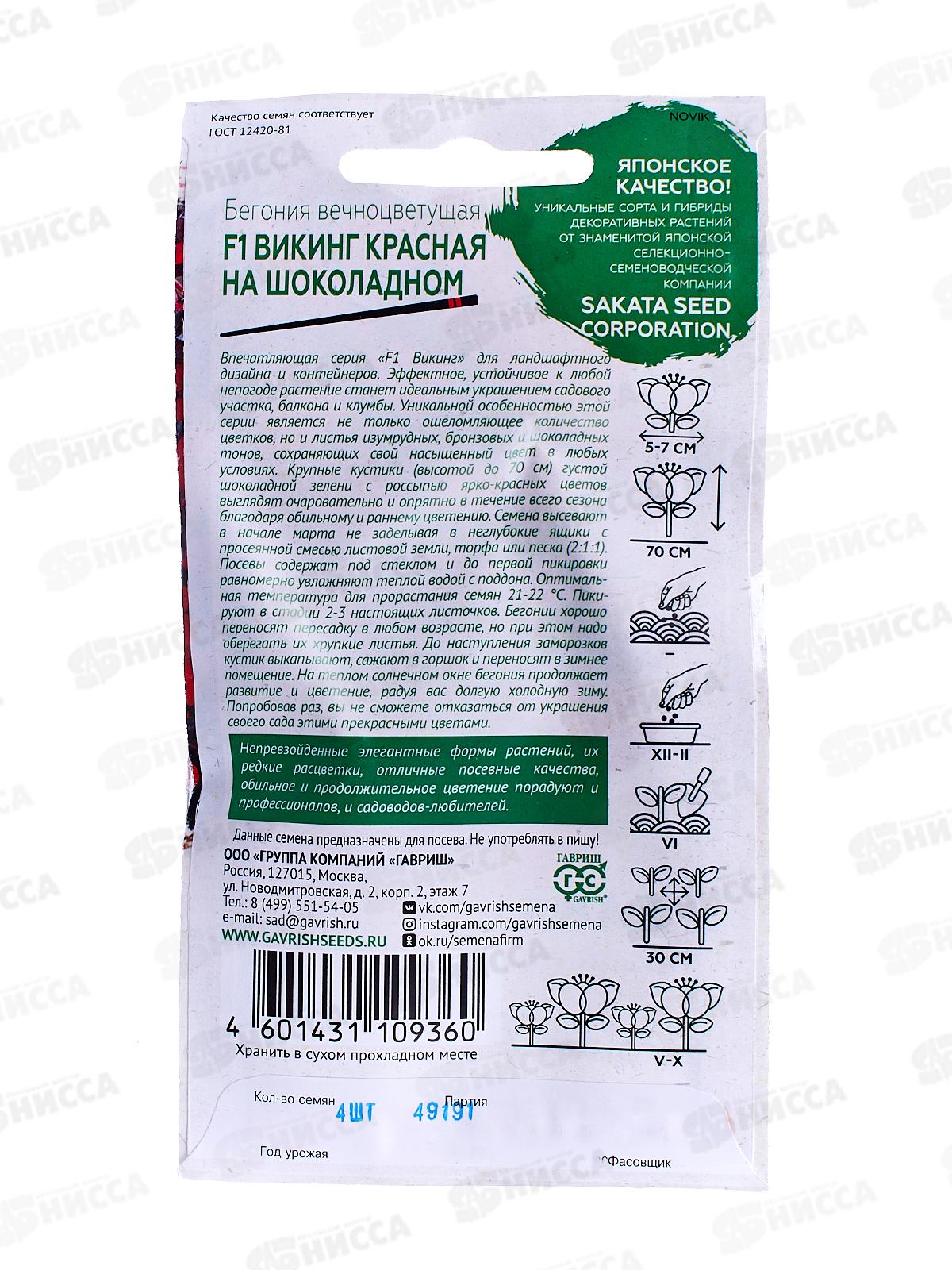 Бегония Викинг красная на шоколадном F1 гранул 4шт пробир *5 ГШ