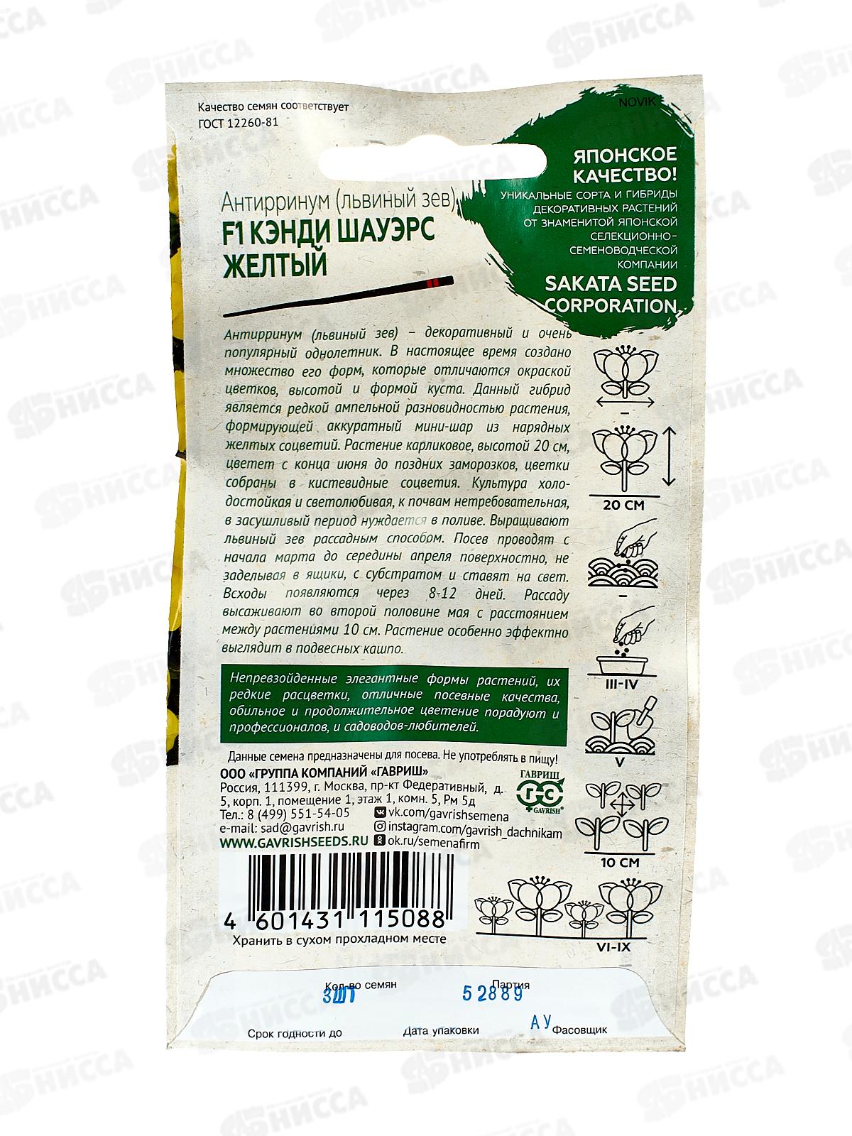 Львиный зев Кэнди Шауэрс желтый F1 3шт Саката Н22 *10 ГШ +