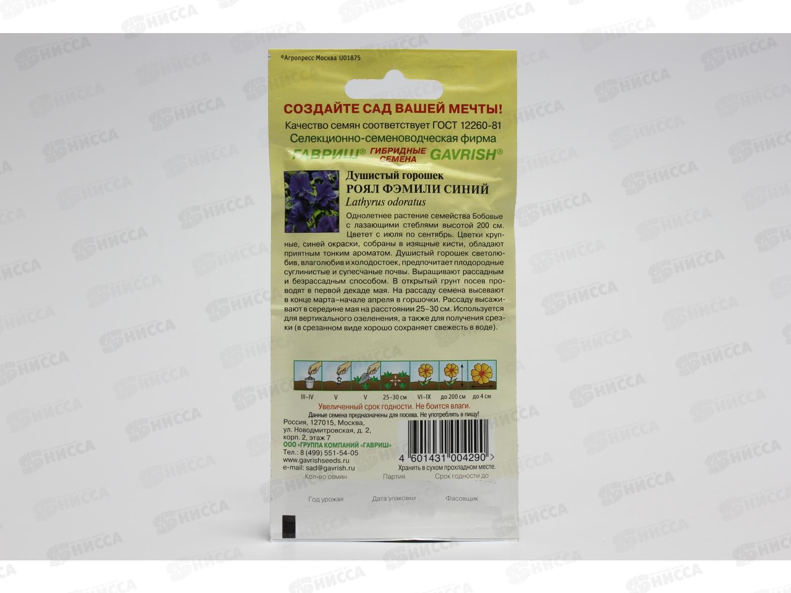 Душистый горошек Роял Фэмили Синий 1,0 грамм серия Сад ароматов ГШ *10 +
