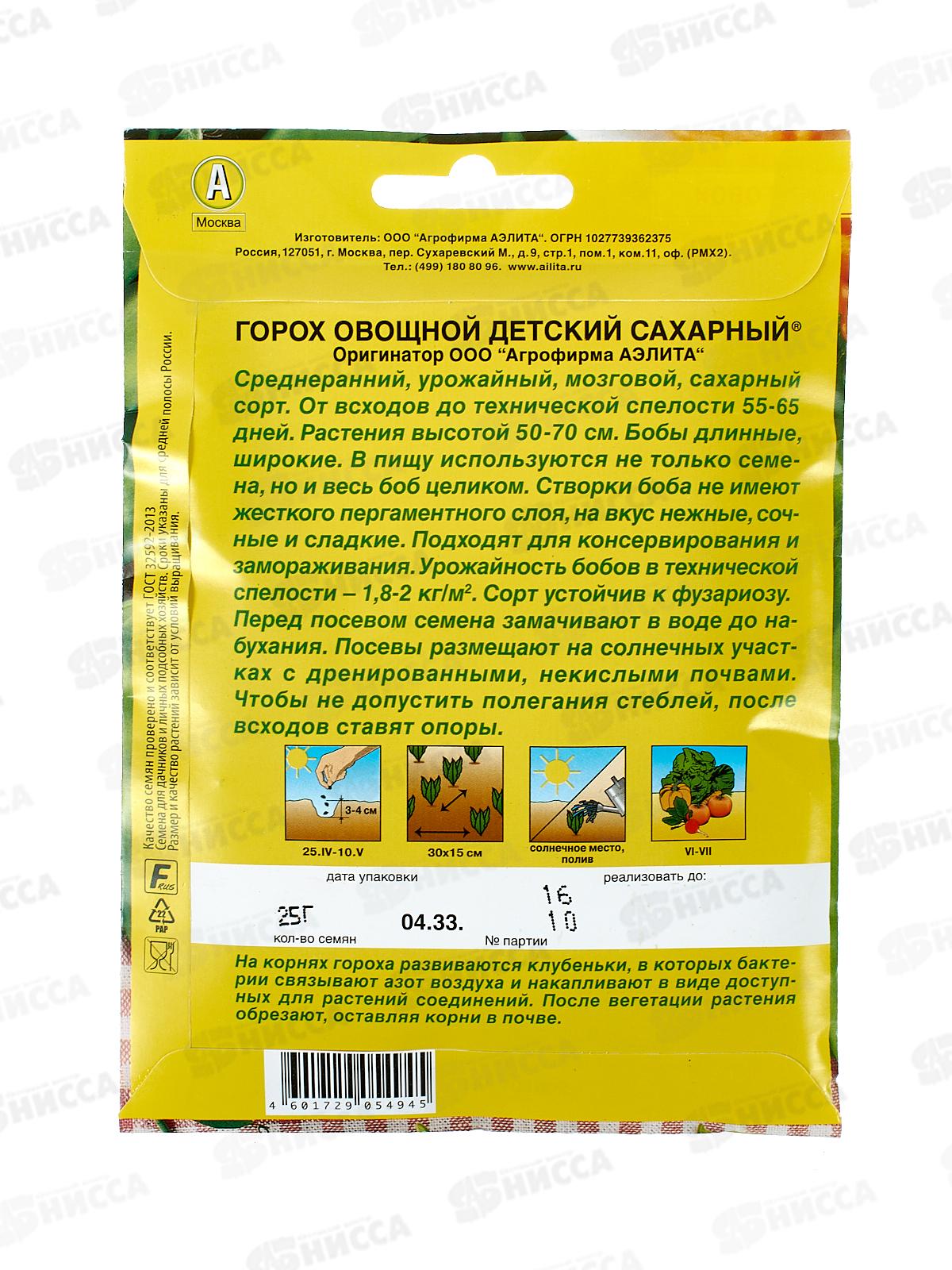 Горох овощной Детский сахарный 25 грамм *5 АЭЛИТА +