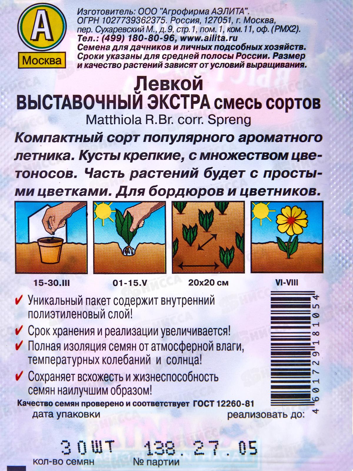 Левкой Выставочный экстра смесь сортов *10 Лидер АЭЛИТА