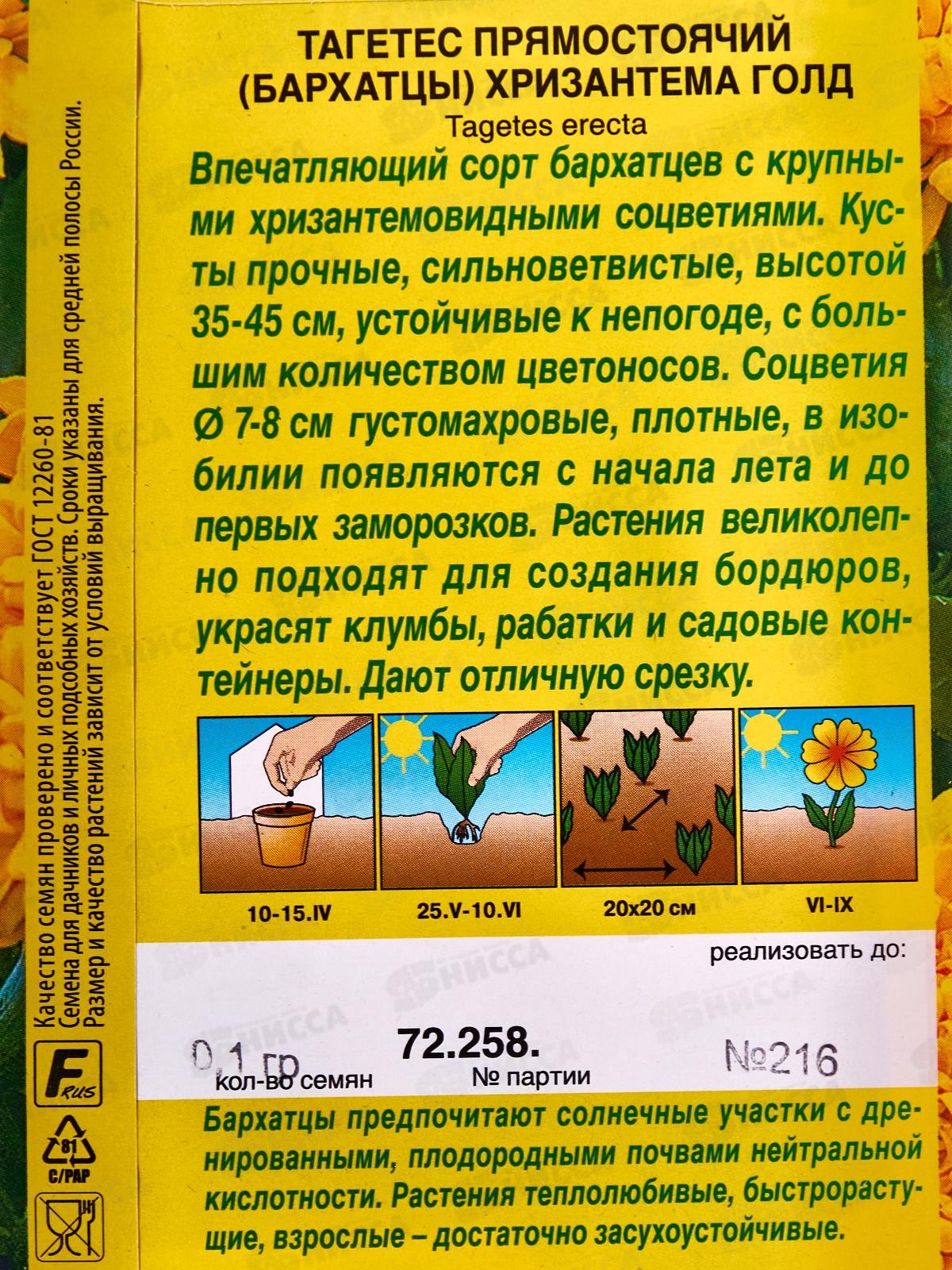 Бархатцы Хризантема голд прямостоячие *10 АЭЛИТА