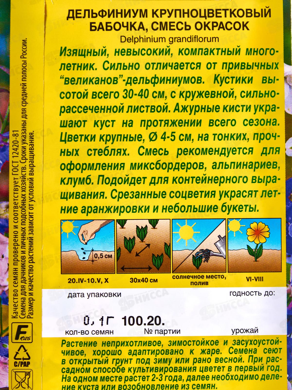 Дельфиниум Крупноцветковый Бабочка, смесь окрасок *10 АЭЛИТА +