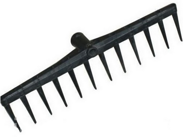 Пластмассовые сенные, усиленные грабли Рустрейд 11-ти зубые СИ-00127, используются для сбора листьев, сена, скошенной травы, а также для рыхления и разравнивания почвы. Пластиковые плоские зубья расположены поперек рабочей планки, за счет чего увеличивается площадь их воздействия при работе.