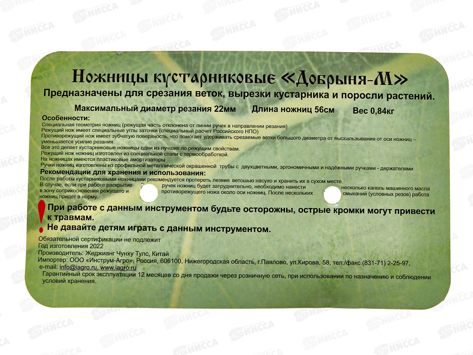 Ножницы кустарниковые "Добрыня" М, 010155 *10