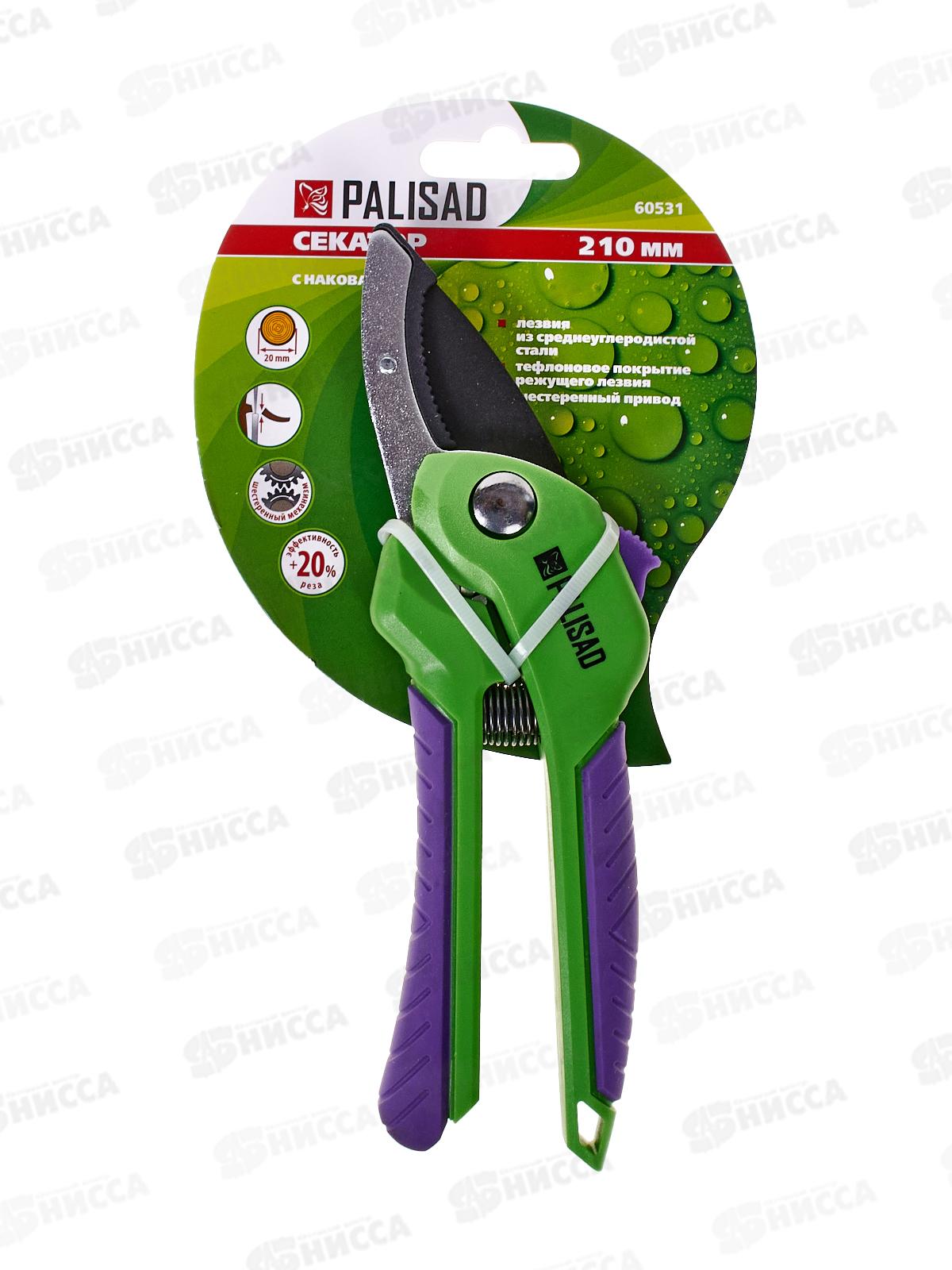 Секатор с наковальней, 210мм, шестеренный привод, двухкомпонентные рукоятки /Palisad