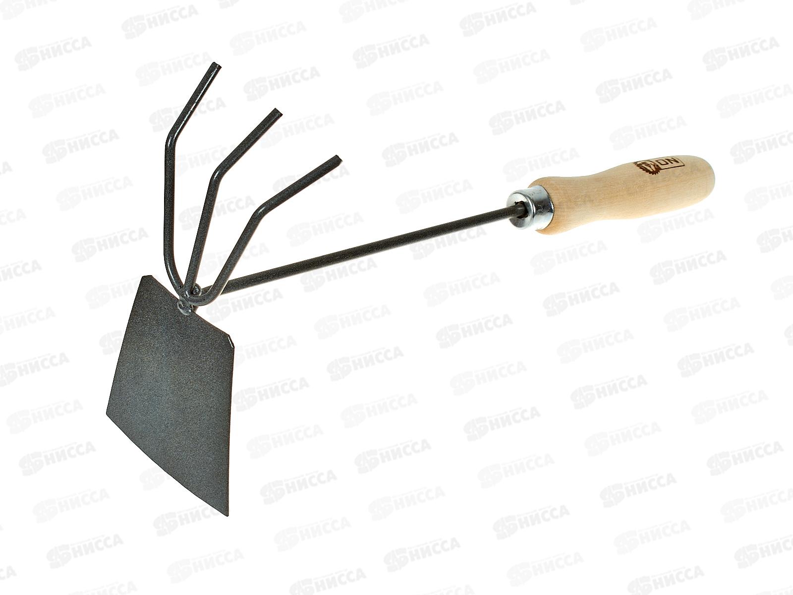 Рыхлитель комбинированный 3-х зубый+мотыжка с деревянной ручкой, порошковая окраска, 24-06-028
