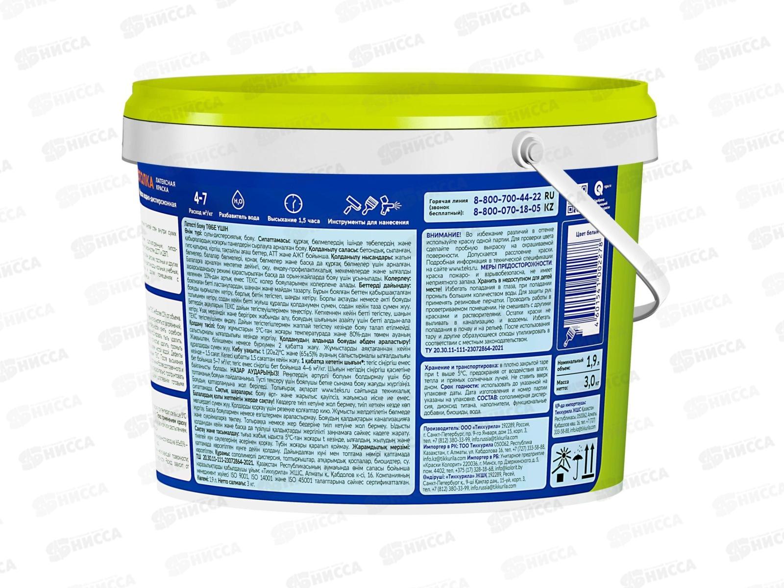Латексная краска Текс для потолка универсал 3кг *150