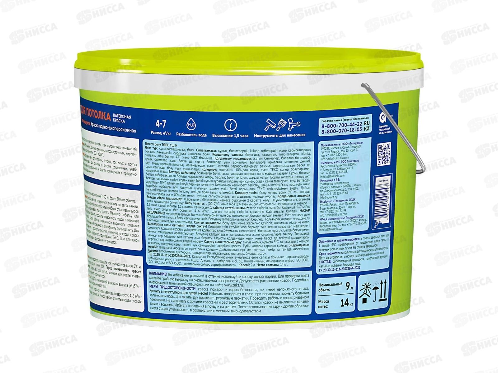 Краска водно-дисперсионная для окраски потолков и верхних панелей стен внутри сухих помещений. Образует глубокоматовое покрытие, скрывающее мелкие неровности поверхности. Применяется по бетонным, оштукатуренным, гипсокартонным, кирпичным, дощатым деревянным поверхностям, ДСП и ДВП. Предназначена для спален, детских, гостиных и других сухих помещений. Рекомендована для окраски в детских дошкольных, учебных, лечебнопрофилактических учреждениях и других помещениях с предусмотренным режимом влажной дезинфекции. Заданный уровень твердости покрытия достигается через 4 недели. В течение указанного периода обращаться с поверхностью аккуратно и избегать очистки. Если поверхность необходимо очистить вскоре после окраски, сделайте это без лишних усилий. Допускается очистка поверхности только сухой мягкой щеткой или губкой. В зависимости от приложенного усилия, на месте воздействия на покрытие может появиться незначительное изменение блеска.