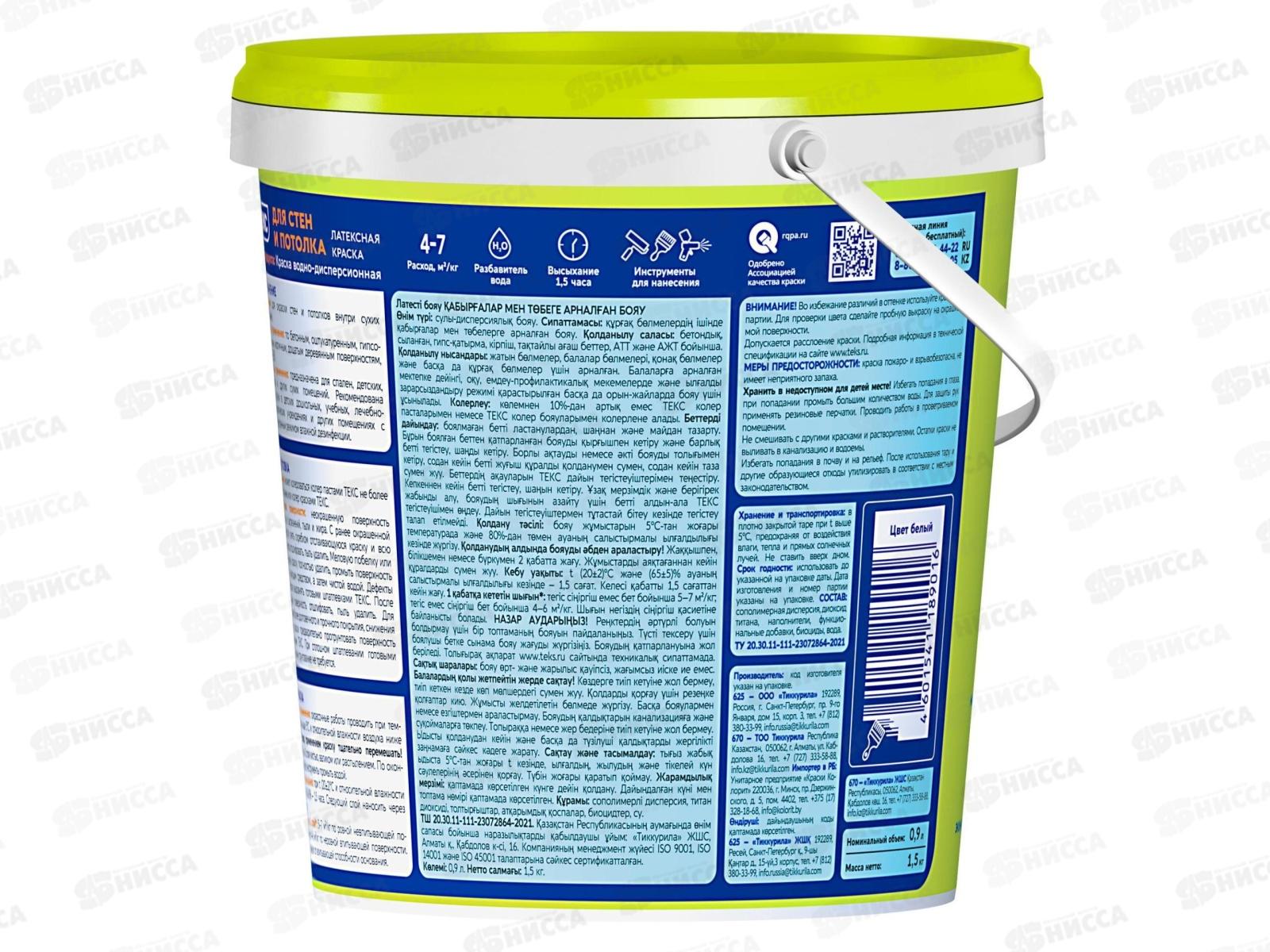 Латексная краска для стен и потолка Текс Интер универсальная 1,5кг *1/18