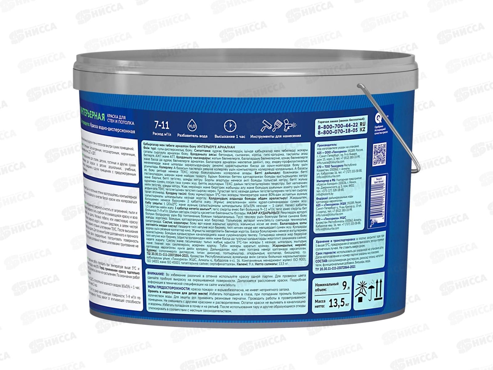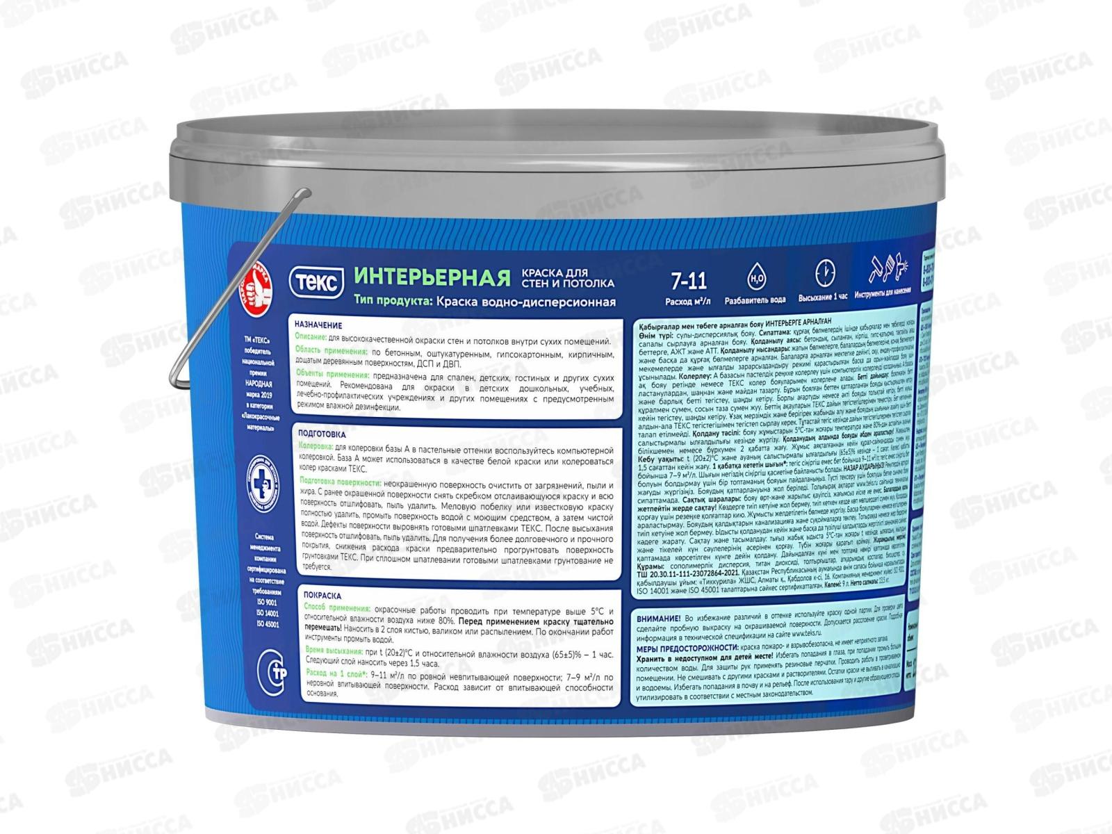 Краска для стен и потолка Интерьерная Текс Профи А 9,0л