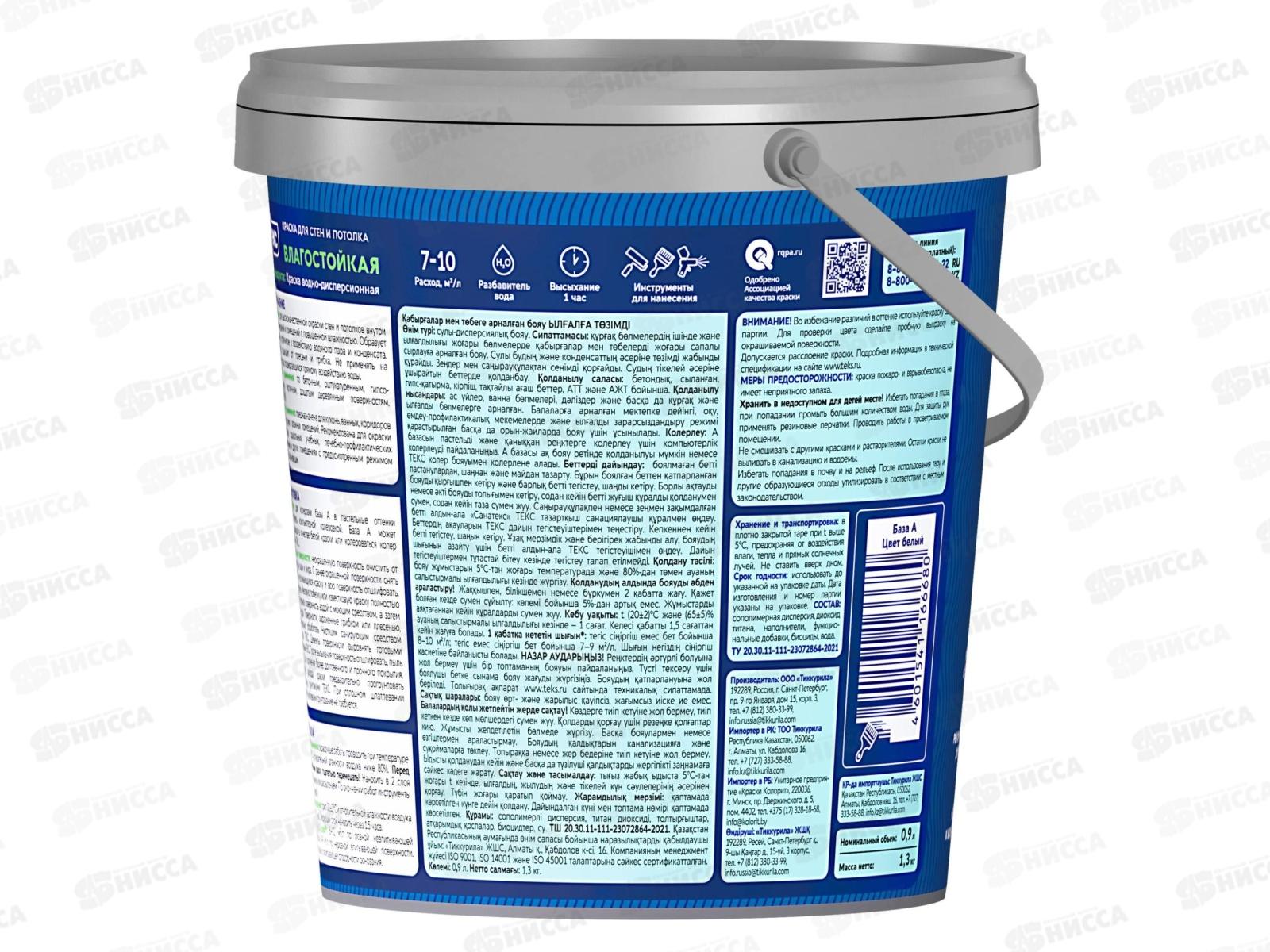 Краска для стен и потолков Влагостойкая Текс Профи A 0,9л *1/18