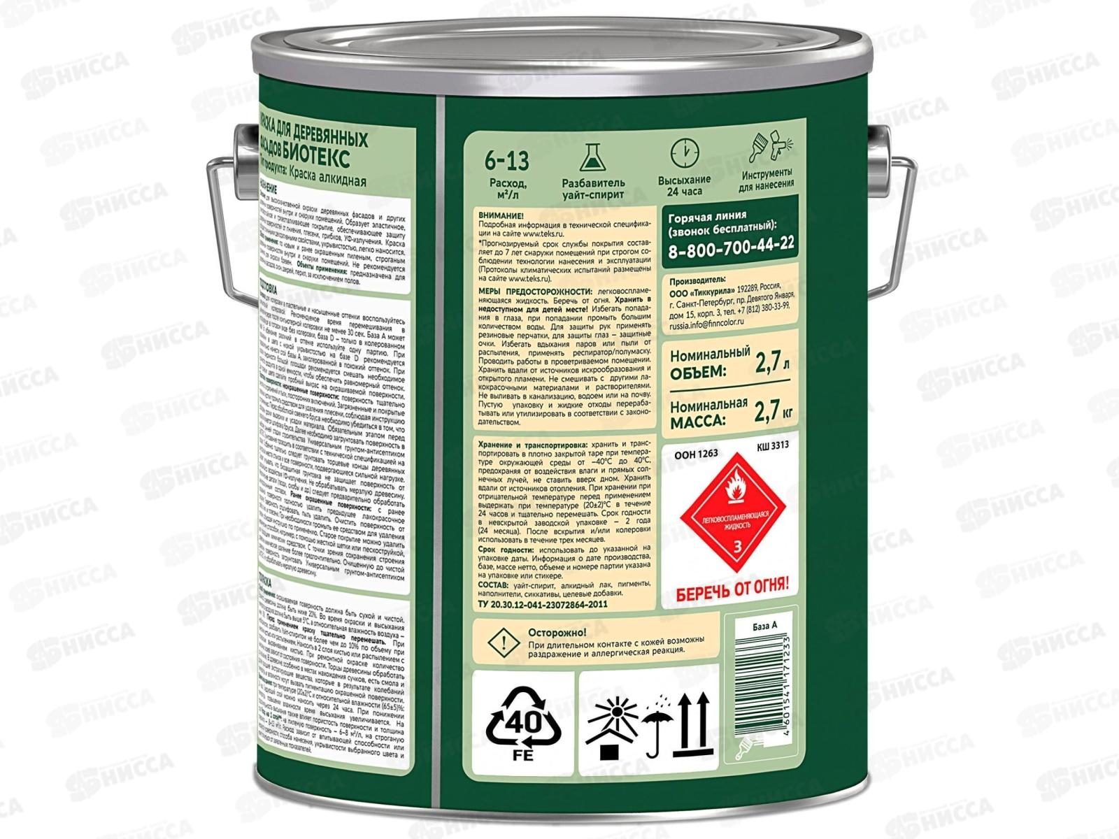 Краска для Деревянных фасадов Текс Биотекс A п/гл 2,7л *1/6