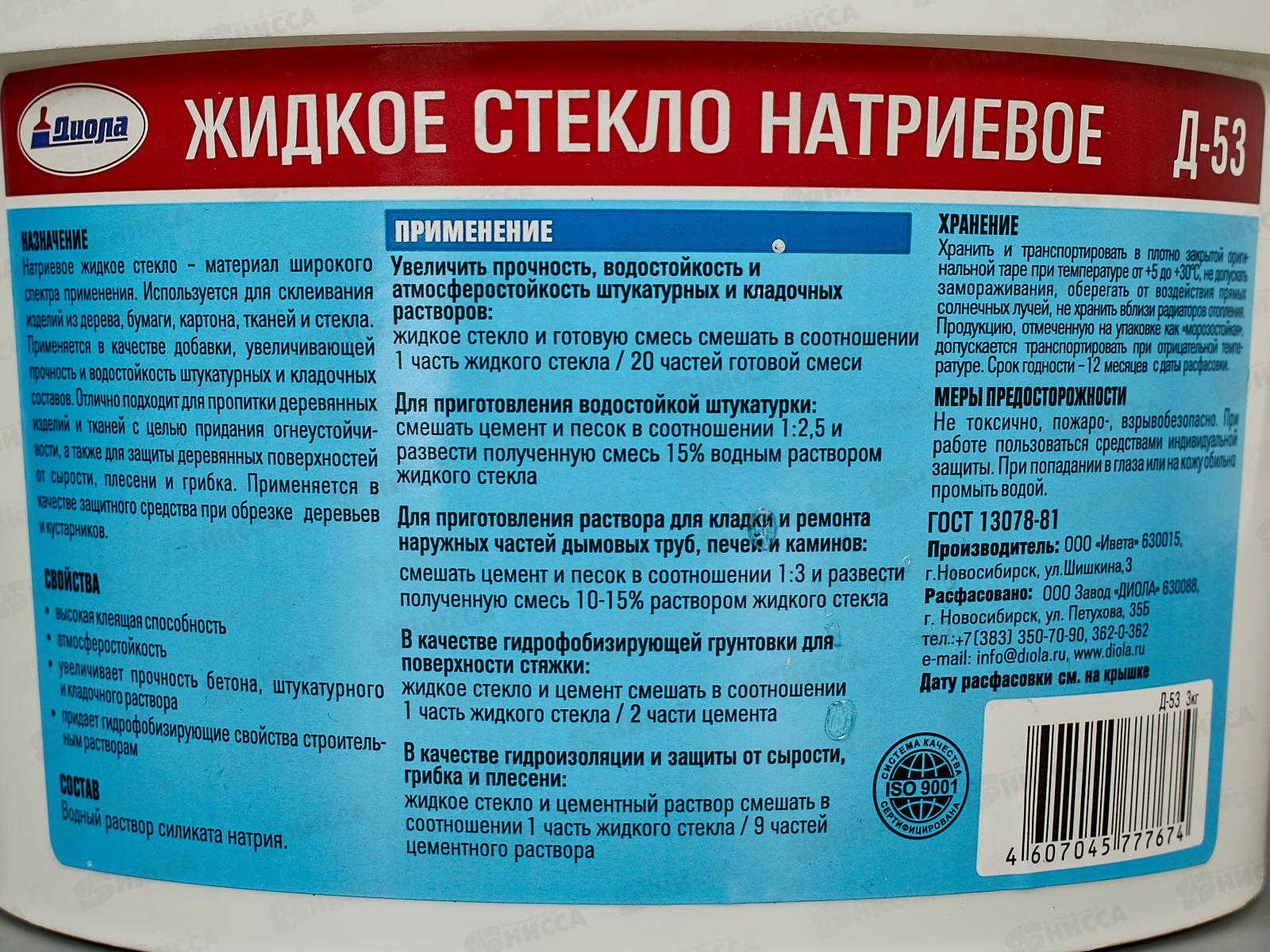 Жидкое стекло натриевое Диола Д-53 3,0кг