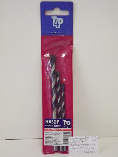 Набор сверл по бетону 3 штуки 250 Китай 2708490 Л