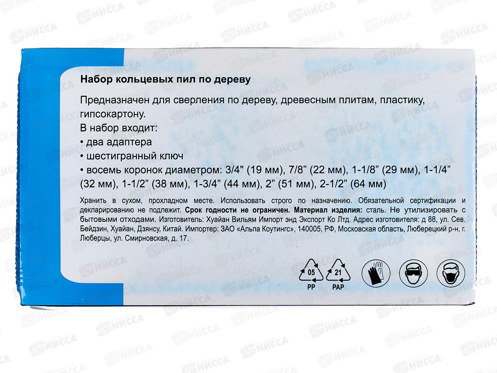 Набор кольцевых пил по дереву, 19-64, 8 насадок 2602003