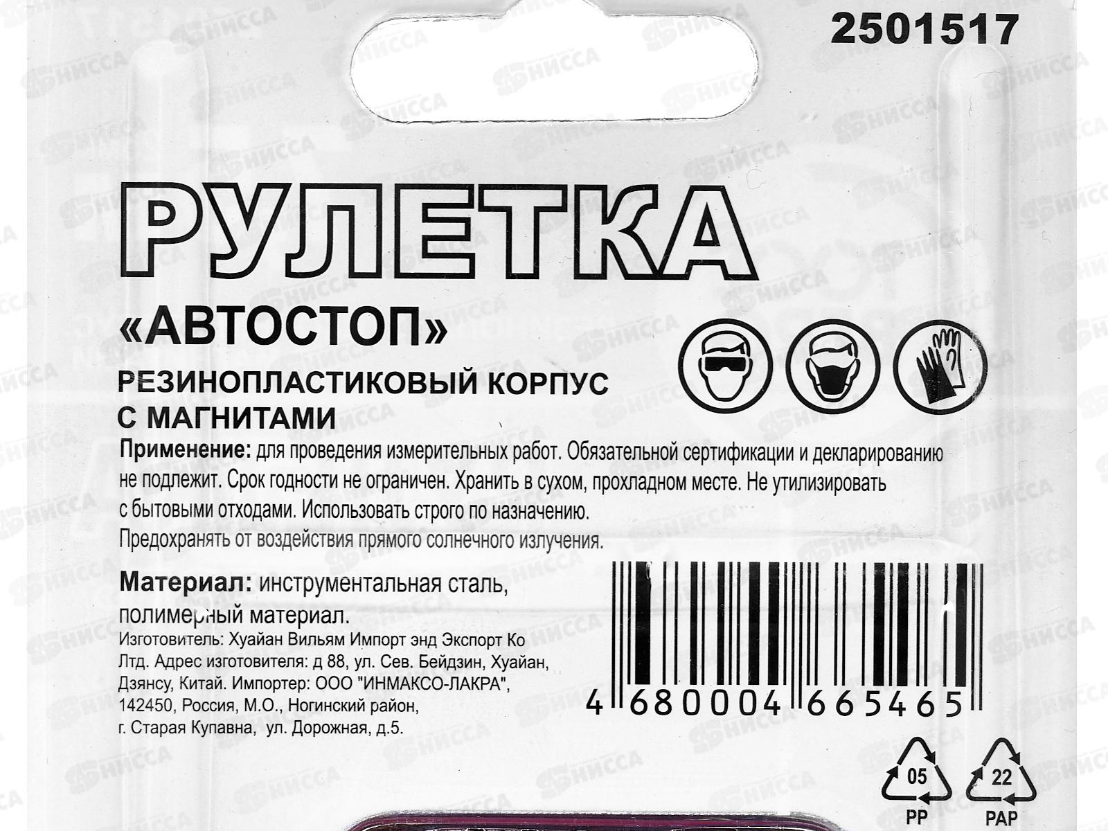 Применяется для проведения измерительных и разметочных работ. Специальная система «Автостоп» обеспечивает фиксацию измерительной ленты в любом рабочем положении. Эргономичный резинопластиковый корпус увеличивает стойкость рулетки к ударным воздействиям и создает дополнительное удобство при работе. Оснащена магнитами.