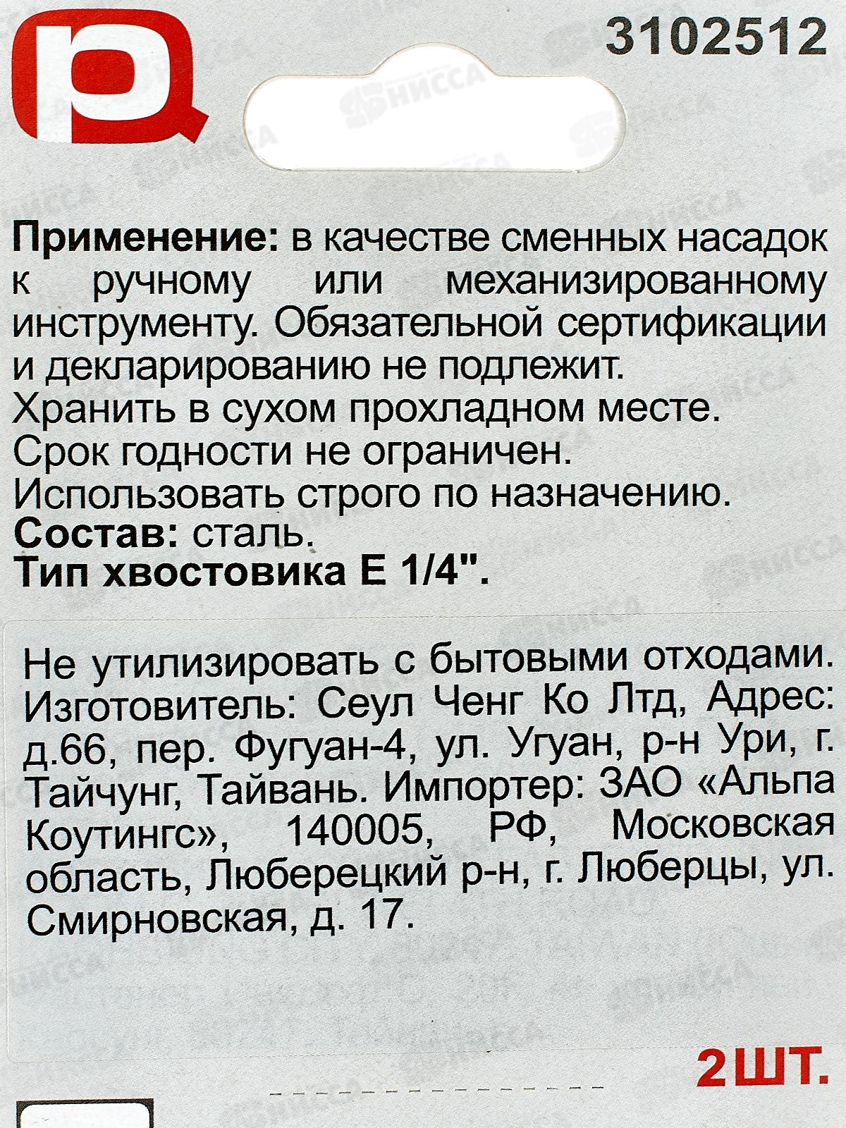 Биты с ограничителем 50мм PZ2(2шт)сталь S2, кованые магнит 3102512 *24