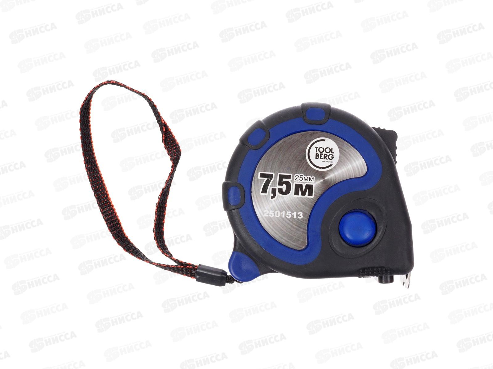 Рулетка 7,5мх25мм (обрезиненый корпус, 3 фиксатора, магнит) ToolBerg, 2501513 *6/60