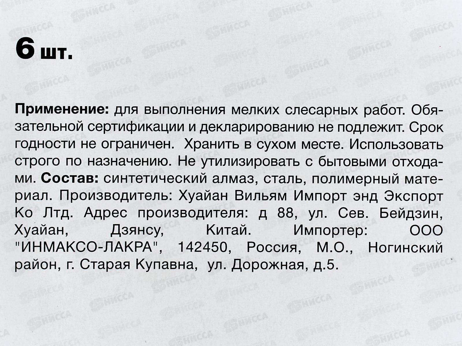 Набор надфилей алмазных 6шт 140*70*3мм, 3600001